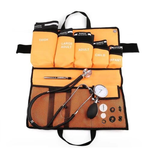 This complete 5-in-1 aneroid sphygmomanometer kit is designed for manual blood pressure measurement across all age groups. It includes five cuff sizes—infant, child, adult, large adult, and thigh—ensuring accurate readings for a variety of patients. The dual head stethoscope provides clear sound transmission for precise auscultation, while the durable carrying case allows for organized storage and portability. Ideal for clinical use, home monitoring, and training purposes, this kit combines reliability, accuracy, and convenience.